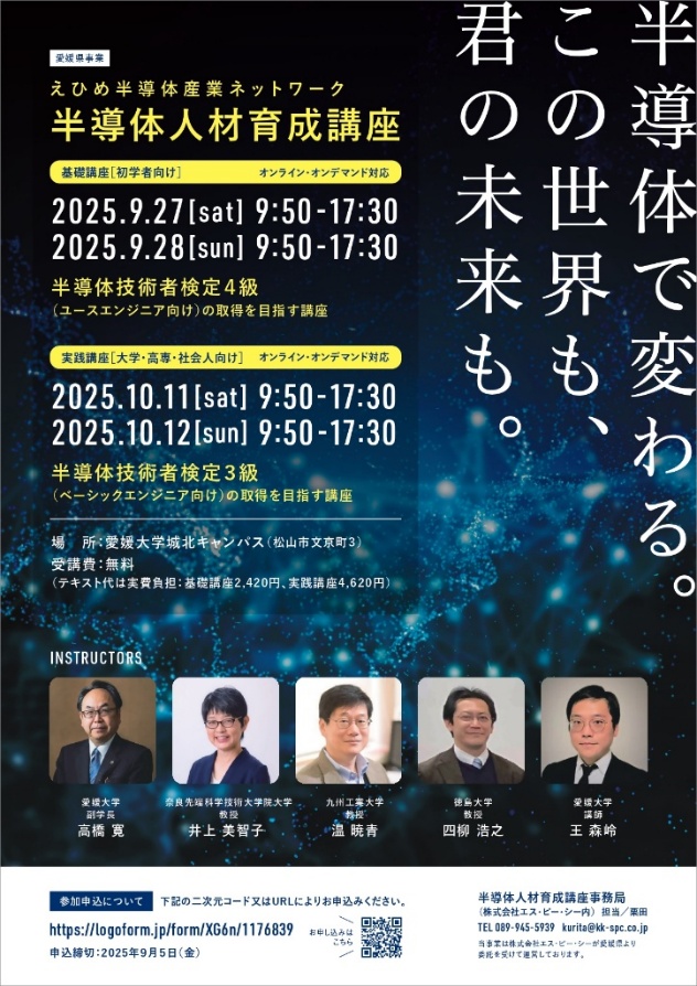 - 2025.9.27-28: Prof. Wen gave a lecture in Matsuyama at a semiconductor education seminar (1, 2) organized by Ehime Prefecture.